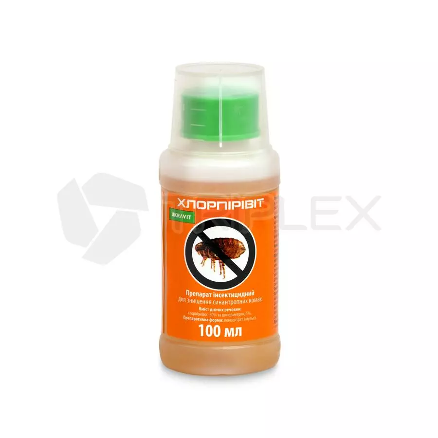 Действующее вещество: Прозрачная жидкость светло-желтого цвета с специфическим запахом, в состав которой входит: хлорпирифос – 50% (500г/л) – 0,0-диетил 0-3,5,6-трихлор пиридил тиофосфат и циперметрин – 5% (50г/л) – (RS)-а-циано-3-феноксибензил(1RS)-цис-транс-3-(2,2- дихлорвинил)-2,2-диметилциклопропанкарбоксилат. В состав препарата также входит эмульгатор-12% и растворитель – до 100%.